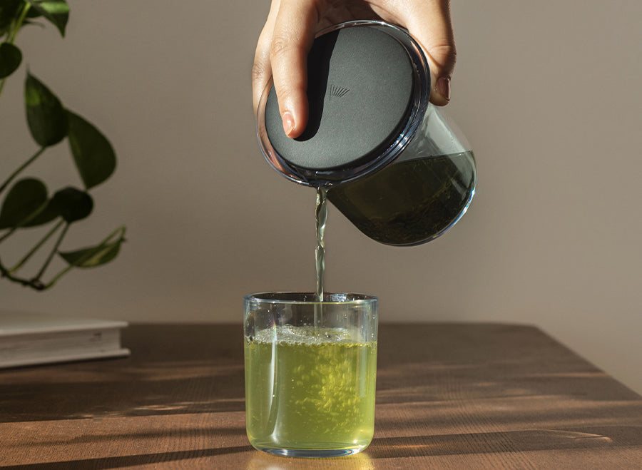 - Pour in 150cc of hot water (70℃ for green, 95℃ for hojicha and genmaicha)